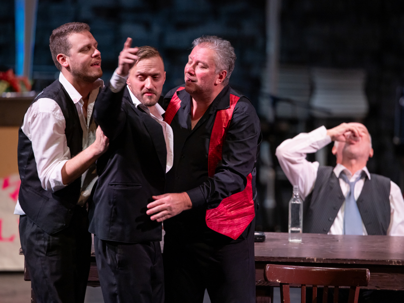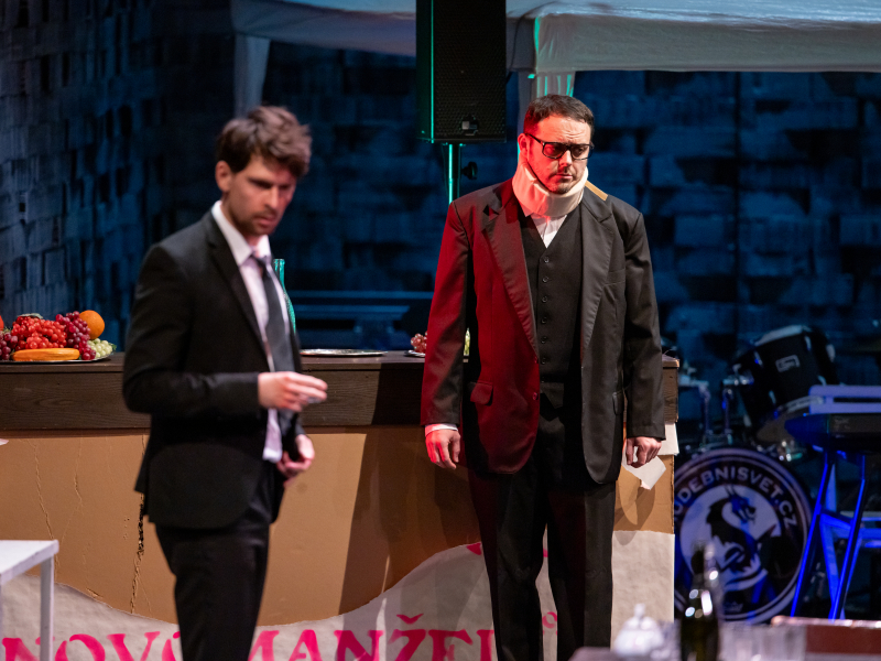 Diváci se mohou těšit na skvělé herecké výkony Petra Panzenbergera, Jana Fišara, Davida Viktory, Víta Rolečka, Martina Dědocha, Vojtěcha Johaníka i šéfa souboru a zároveň režiséra inscenace Vojtěcha Štěpánka.