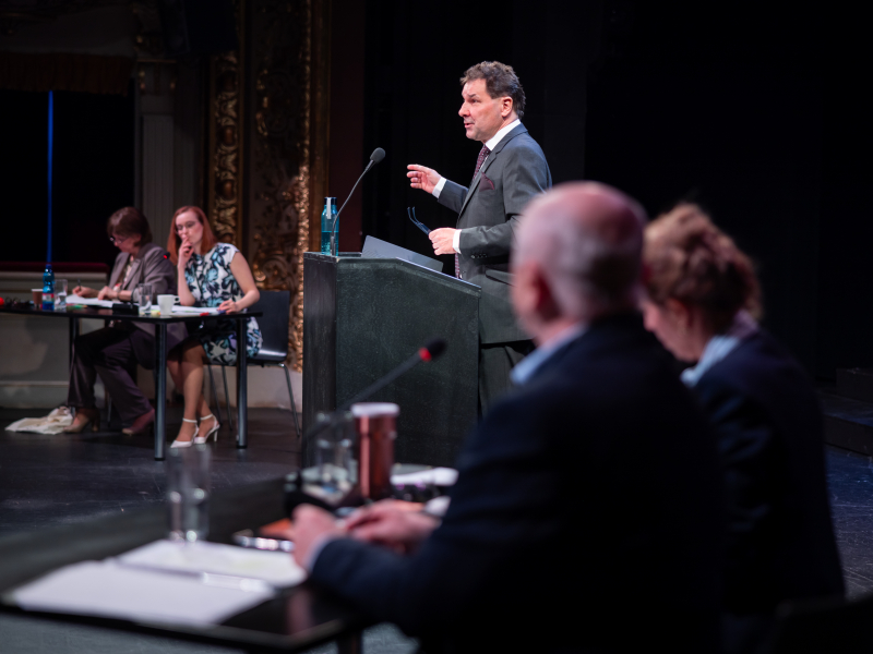 ČINOHRA / 24.2.2026Poslední únorový den uvede činoherní soubor v Divadle Antonína Dvořáka českou premiéru dramatu Ferdinanda von Schiracha BŮH. Diváky vtáhne do děje diskuze speciální etické komise svolané kvůli žádosti staršího muže o asistovaný odchod ze světa.