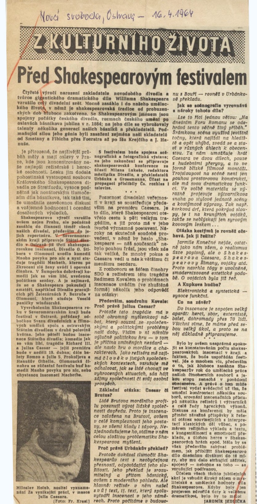 Miloslav Holub (Julius Caesar), Václav Procházka (Marcus Antonius, triumvir po smrti Julia Caesara)