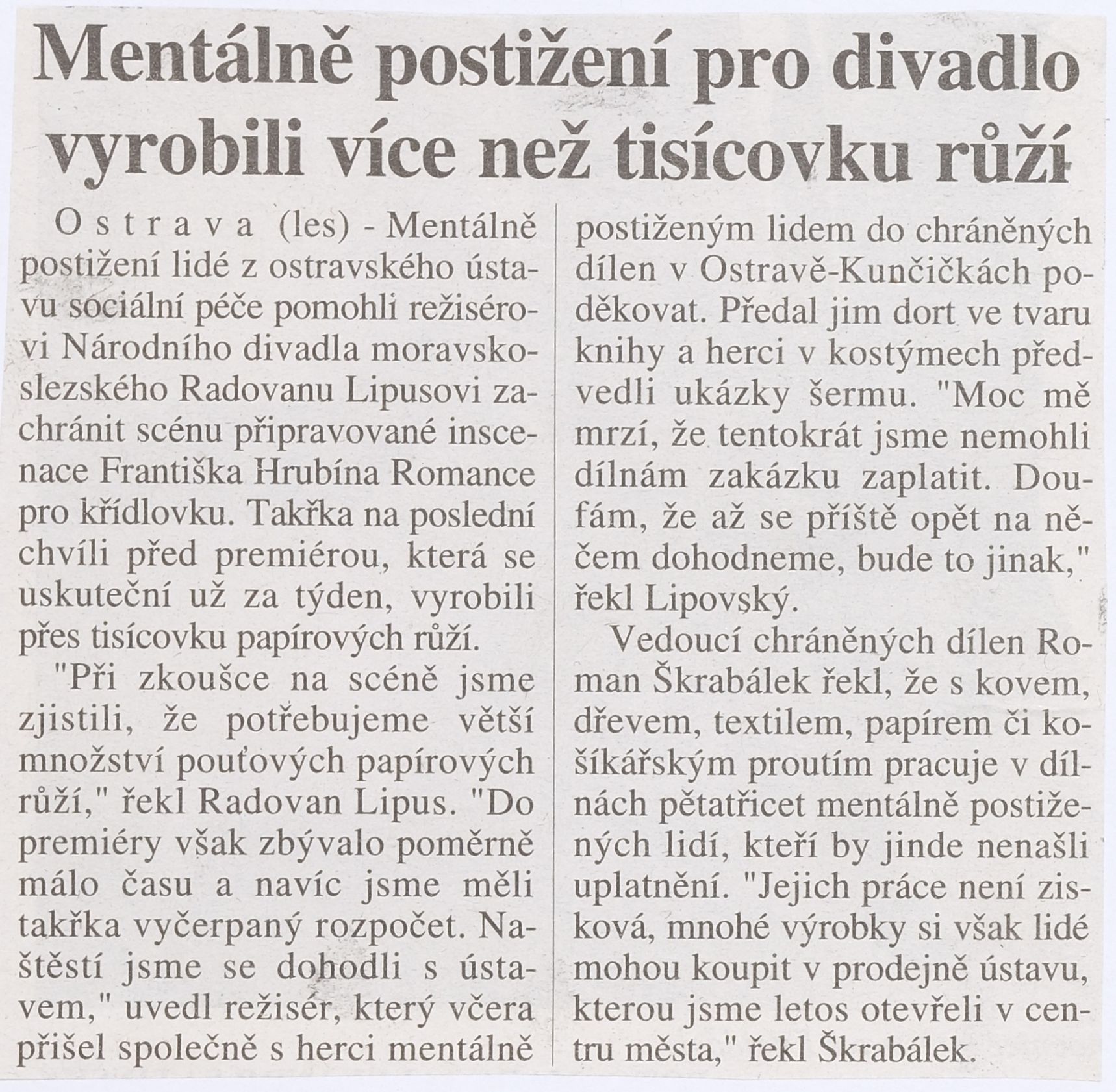 | 4.12.2000 | 17:00 | Divadlo Jiřího Myrona | Repríza | zobrazit detail | |