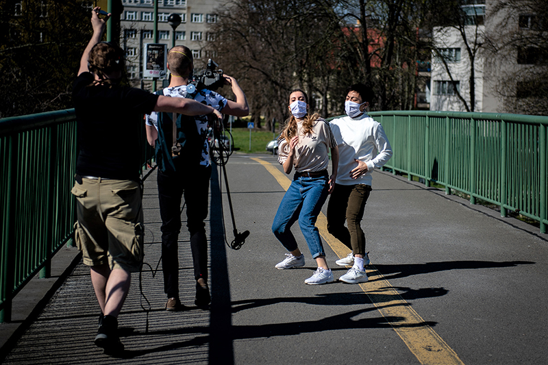 „Nápad tančit na veřejném prostředí vznikl z omezení společně tančit na sále a v divadle, ze strachu tanečníků být spolu. A tak tanečníci tančí pouze v sólových kreacích. V duetech pak pouze životní partneři, nebo spolubydlící, ale hlavně tančí na distanční vzdálenost od kolemjdoucích diváků a s rouškami,“ podotkla šéfka baletu NDM Lenka Dřímalová.