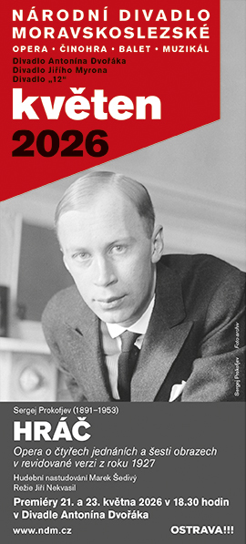 Pro námět své opery se Sergej Prokofjev obrátil k Dostojevského krátkému románu Hráč. Imaginární lázeňské město Roulettenburg nám odkrývá svět lidí posedlých penězi, společenským vzestupem i chorobnou citovou závislostí. V samém středu dění stojí Alexej, vychovatel v rodině zadluženého generála, a jeho mučivý vztah k Polině, v němž se láska prudce mísí se vzdorem i ponížením. Vrchol díla přichází ve scéně u rulety, kde se hazard mění v obraz slepé vášně a ničivé moci náhody. Hráč patří k nejodvážnějším operním počinům Prokofjevova raného období. Satira, groteska a citová bezohlednost v něm kreslí obraz společnosti podřizující se jedinému opojení: riskovat vše.V hudebním nastudování Marka Šedivého a režii Jiřího Nekvasila se na scéně Daniela Dvořáka a v kostýmech Sylvy Zimuly Hanákové v hlavních rolích představí Alexander Kravets / Luciano Mastro (Alexej), Anna Nitrová / Zuzana Revai (Polina), Jozef Benci / Martin Gurbaľ (Generál), Lucie Hájková / Stanislava Jirků (Bábinka), Raman Hasymau / Josef Moravec (Markýz), Pavel Divín / Bence Szabó (Mr. Astley), Jana Hrochová / Eliška Zajícová (Mlle. Blanche). Premiéry 21. a 23. května 2026 v 18.30 hodin v Divadle Antonína Dvořáka.