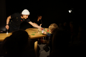 Inscenaci nastudovali režisérka Johana Šulík Bártová a výtvarník a hudebník Jakub Šulík (oba působí v pražské divadelní skupině FRAS) spolu se členy činohry NDM Kamilou Janovičovou, Anetou Kaluža Klimešovou, Martinem Dědochem a Robertem Fintou. Herci se alternují, v představení hrají vždy dva.
