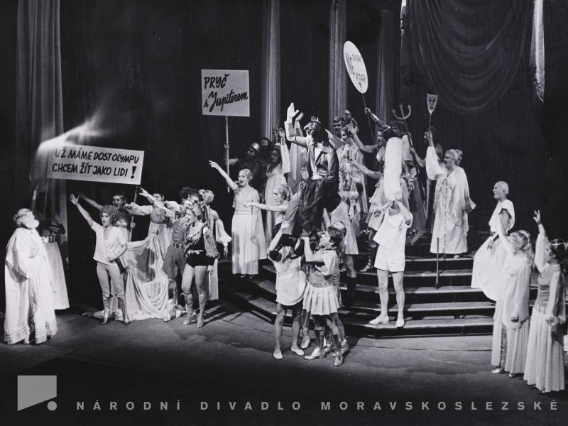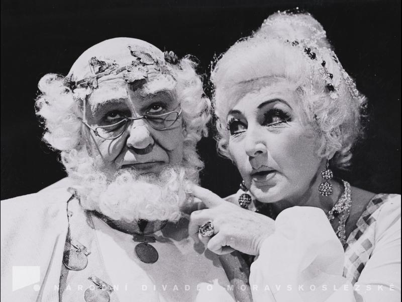 Siegfried Rennert (Scéna, Kostýmy), Karel Šíp (Jupiter, šéf olympských bohů), Liběna Astrová (Juno, jeho choť)