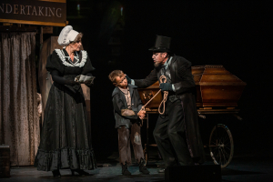Eva Zbrožková (Sowerberryová), Rostislav Radecki (Oliver Twist), Pavel Liška (Sowerberry)