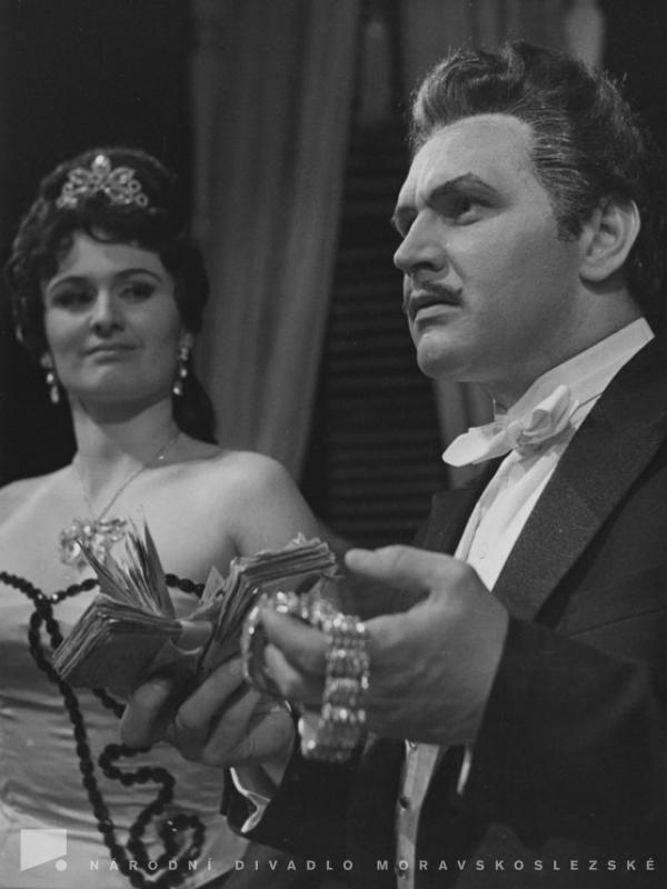 Libor Olma (Lescaut, bratr Manon), František Návrat (De Bretigny, generální nájemce daní)