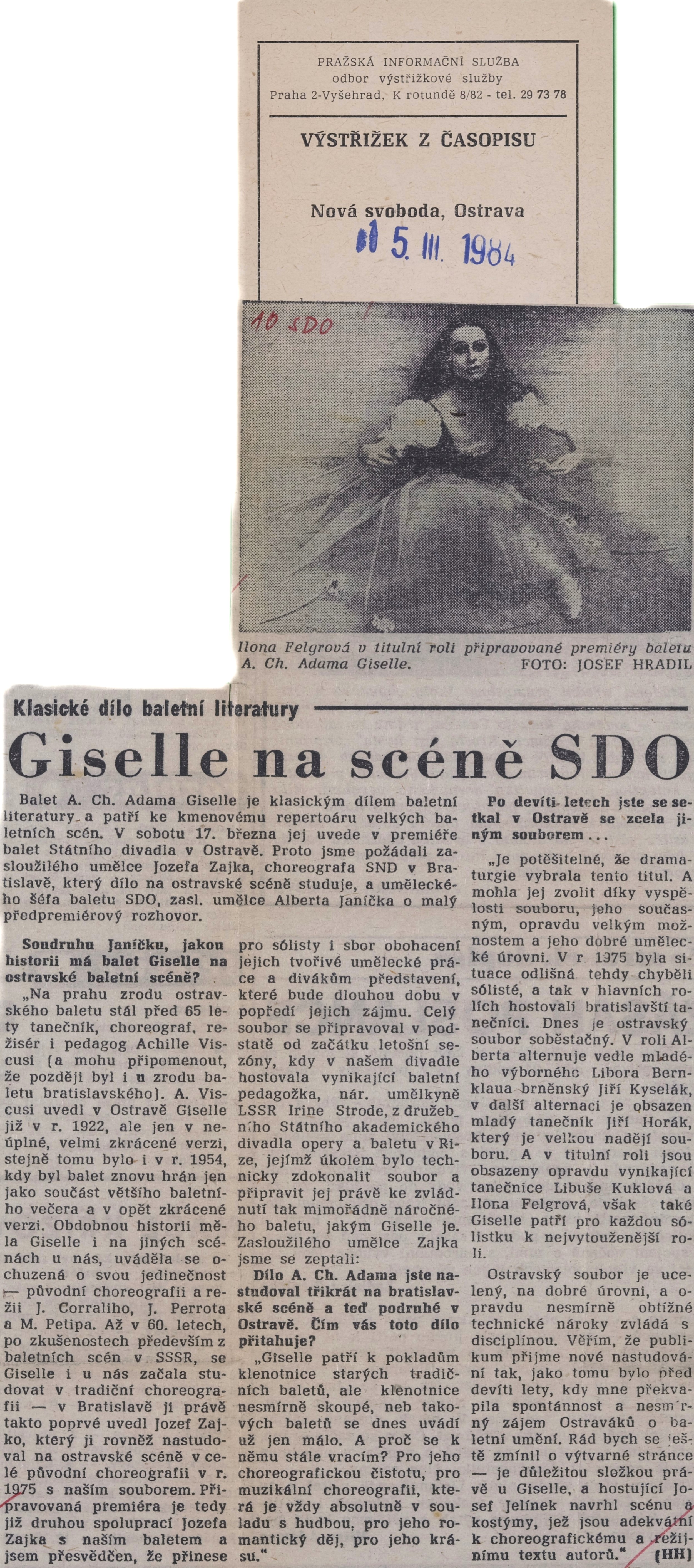 (ob). Slovo má šéf baletu SDO-zasloužilý umělec Albert Janíček. Ostravský večerník, 8. 3. 1973.