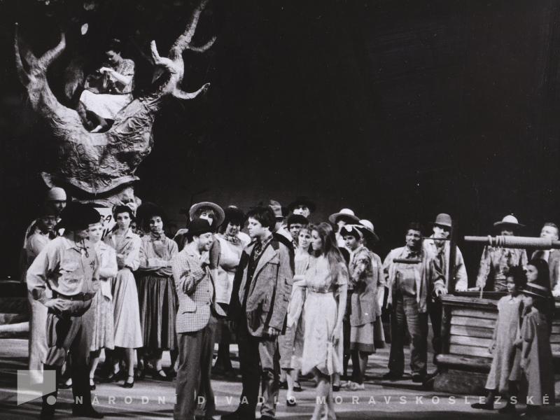 Marcel Školout (Nicky Mahler, libretista), Blanka Popková (Berta Mahlerová, jejich sestra), Rudolf Sobotka (Vicky Mahler, libretista)