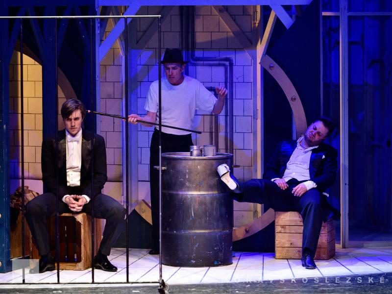 Tomáš Savka (Moonface Martin), Martina Vlčková (Reno Sweeney), Lukáš Vlček (Lord Evelyn Oakleigh)