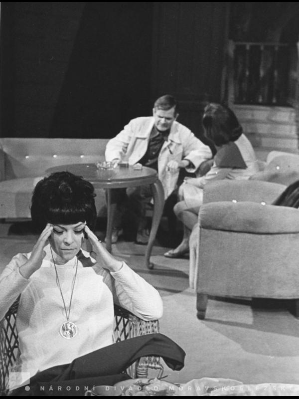 Jiřina Froňková (Táňa Kolcovová, tlumočnice), Jaroslav Šára (Brickmann, profesor)