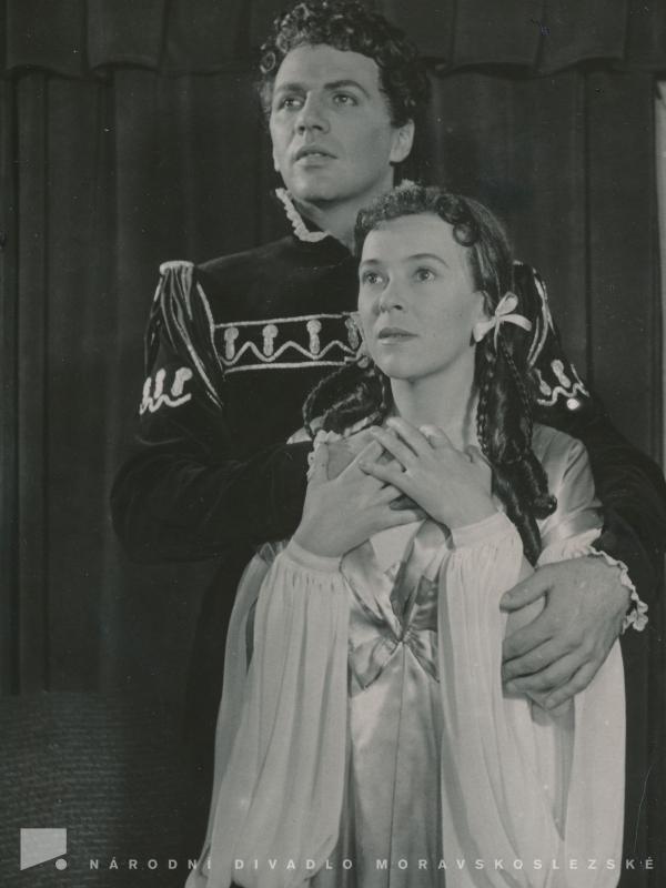 Jiřina Froňková (Julie, dcera Kapuletova), Jaroslav Nedvěd (Romeo, syn Montekův)
