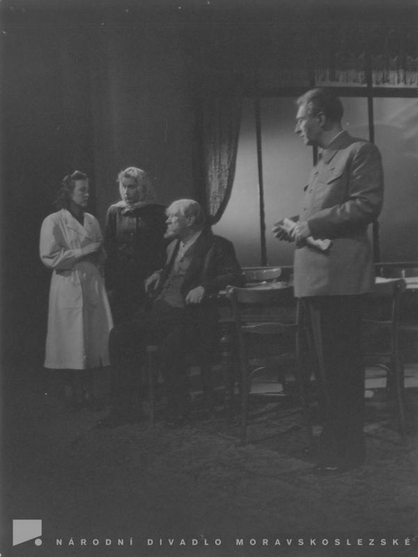 Jiřina Froňková (Věra Vasiljevna Jermolajevová, zástupce předsedy Závodní rady), Jana Kalášková (Lidmila Prokofjevna Leonťjevová, jeho dcera), Jiří Myron (Prokofij Andrejevič Leonťjev), Vilém Pfeiffer (Aleksej Georgijevič Plotovščikov, sekretář základní organizace)