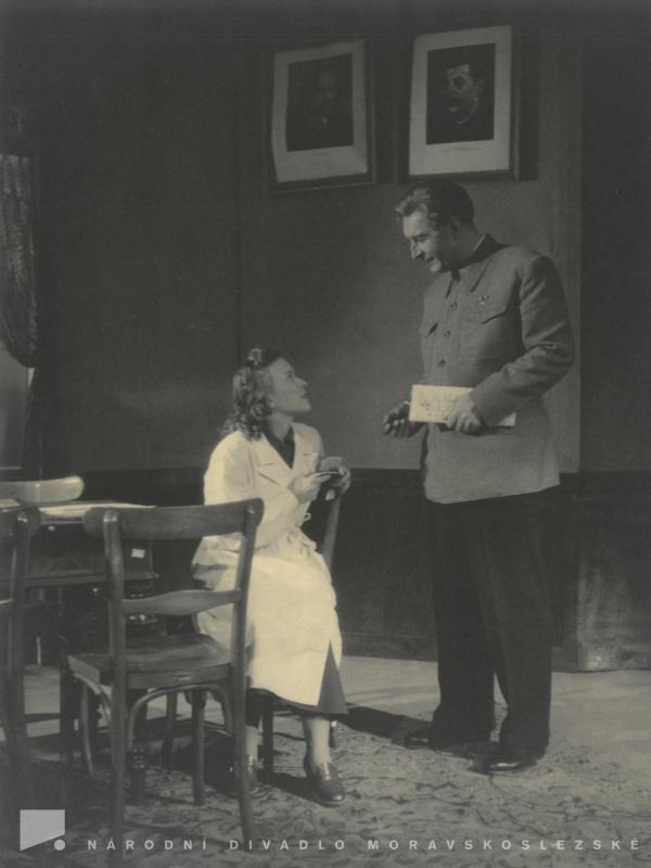 Jana Ebertová (Major Nina Alexandrovna Slavinová), Jan Matýsek (Seržant Kovalenko), Vlasta Vlasáková (Gréta Normannová, herečka), Vilém Pfeiffer (Major Sergej Ivanovič Slavin, její manžel), Jiřina Froňková (Táňa Kolcovová, tlumočnice)
