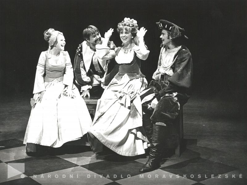 Vlasta Vlasáková (Flaminie, jeho neteř, vdova), Lubor Tokoš (Fulgenzio, měšťan, milý Eugeniin), Jiřina Froňková (Eugenie, jeho neteř)