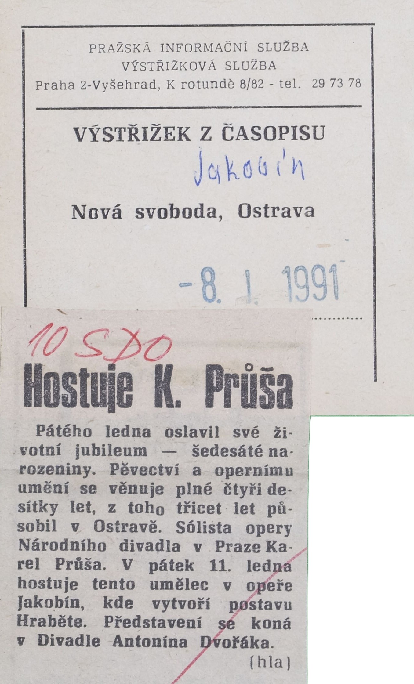 Karel Průša (Jov, patriarcha moskevský), Radmila Minářová (Xenie, dcera Borise Godunova)