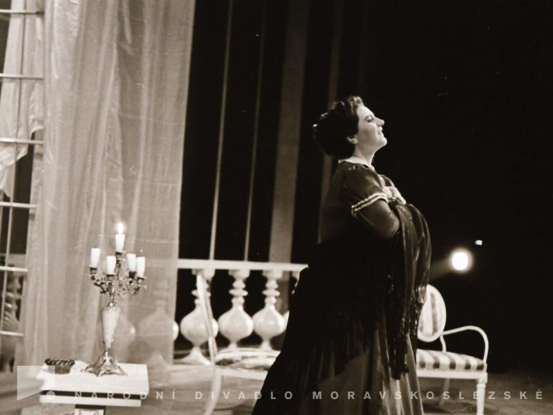 Jiří Zahradníček (Lenskij), Bronislava Taufrová (Larina, statkářka), Alena Havlicová - Jakšová (Olga)