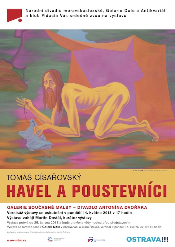 Květnové výstavní expozé Tomáše Císařovského v Ostravě zahrnuje dvě souběžné výstavy, z nichž každá sice představí jiný výsek tvorby tohoto pražského malíře, ale současně se obě expozice až překvapivě a komplementárně doplňují. Zatímco v podzemním alternativním prostoru Galerie Dole v Antikvatiátu a klubu Fiducia se ukazuje sociálně „běžná" Císařovského figurální tematika s jasnými postexistencionálními přesahy, které v názvu dvojvýstavy prezentují Poustevníci, v oficiózně honosném prostředí Divadla Antonína Dvořáka dochází na obrazy ze života posledního československého a prvního českého prezidenta Václava Havla, což by téměř mohlo svádět k domněnce, že již jde o předzvěst slávy 100. výročí vymanění se ze spárů Rakouska-Uherska a vzniku první Československé republiky. Tuto část reprezentuje v názvu výstavy jméno Havel.